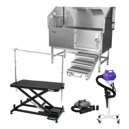 Waggz Complete Grooming Station Bundle – Step-Low Lite 47” Table + Roll-Lock 50” Tub
